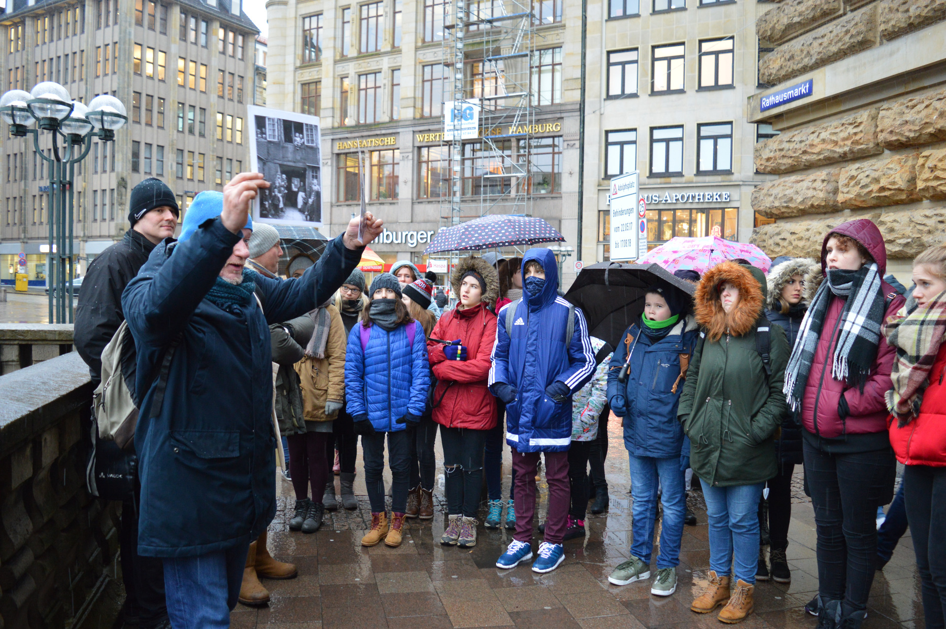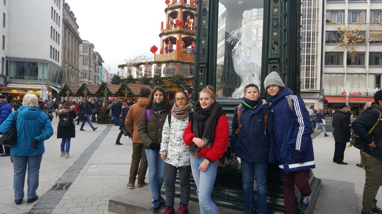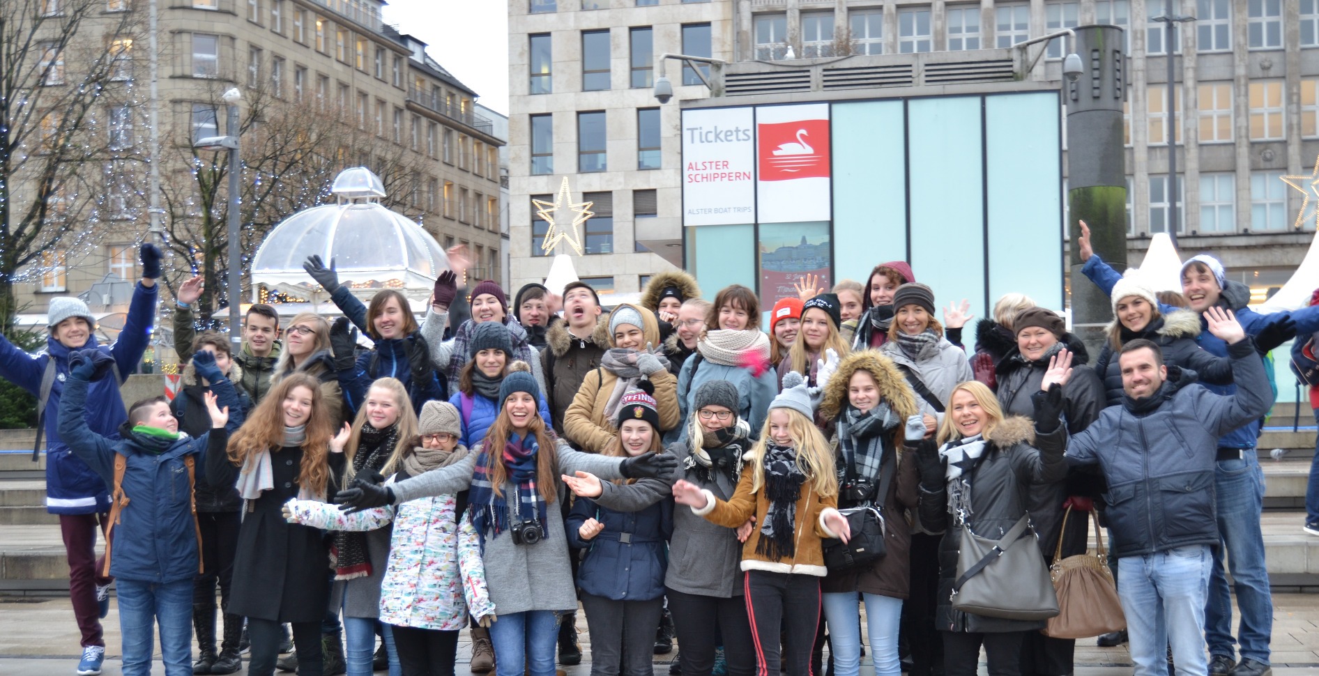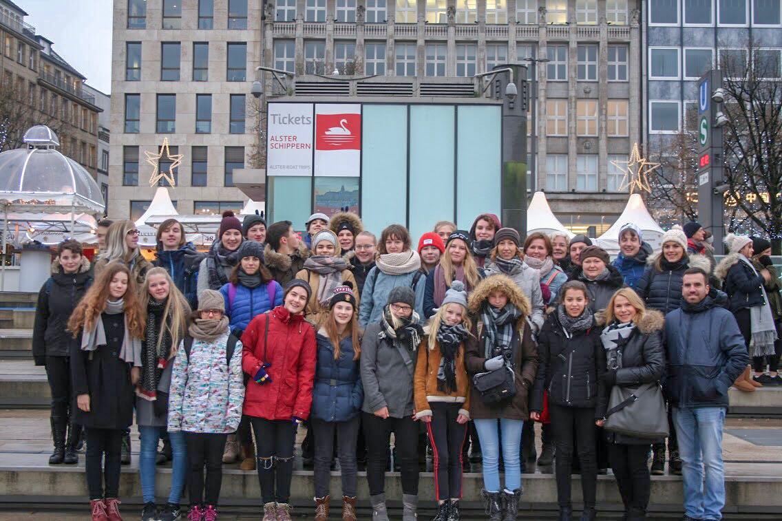 Tuesday started too early for some of us. At 7:15 am we met at school to take the bus to beautiful Hamburg where we started with a tour through town at 10:30. The beginning of the tour was at Jungfernstieg from where we walked across the town for about three hours. On our way we saw the town hall, the famous "Speicherstadt", the Elbphilharmonie, the red light district and even took the underground and the boat on the Elbe for some stops. Besides we learned about historical events like the great fire that destroyed most of the town in 1842 and how the town grew over time. Because of the typical German weather (it was super cold and rainy) everyone was looking forward to spending their free time inside. For most of us that started with lunch at the food sky of the Europa Passage and continued with shopping. A group of students had planned to see the Miniature Wonderland with their exchange students so everybody found something to do during their spare time and on the bus ride back home there was plenty of time to exchange all kinds of stories and experiences of our time in Hamburg.
