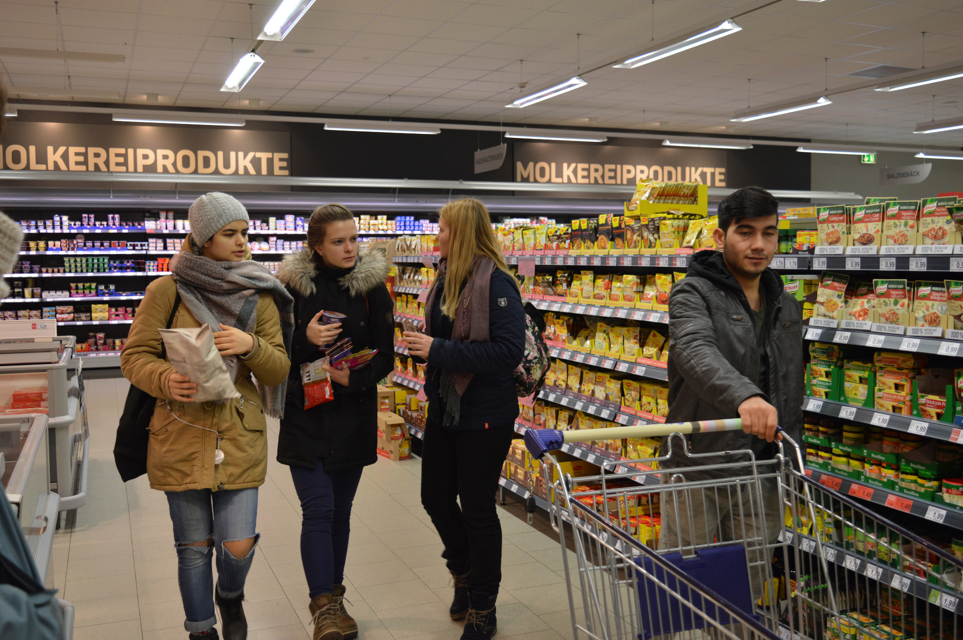 In contrast to Tuesday, there was enough time to sleep in a little because we started our day at 9am at Lobetal. That's a charity that supports people with mental and psychological disability, epilepsy, addictive disorder or who generally depend on care. In Celle they provide help for underage refugees who came to Germany without anyone in charge of their care. Every pre-planned group of three Germans and their exchange students teamed up with one refugee. We started with a short getting-to-know-each-other-session after which we began to plan the recipes we were going to cook on Thursday. After every group wrote down a shopping list and we made sure that not every group bought the same essentials like salt and pepper we took off for grocery shopping in various shops. Much faster than expected all groups were done with their list and we had lots of time left to spend on our own.
